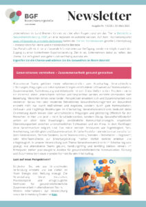 Webinar: „Brücken bauen in altersdiversen Teams – Kommunikation und Führung für Leistung und Gesundheit“ | 18.05.2026, 10:00 – 11:30 Uhr | Weitere Informationen zu der Veranstaltung sowie Anmeldung finden Sie hier.
